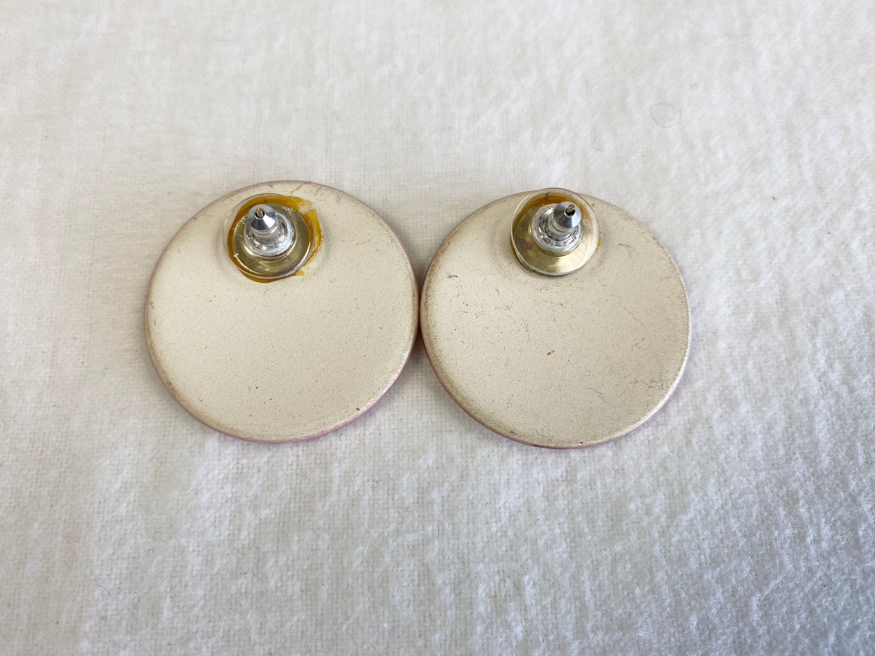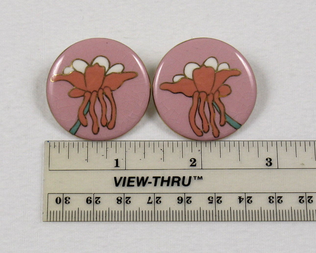 Very pretty 1980's pink enameled ceramic stud earrings with flower motif.