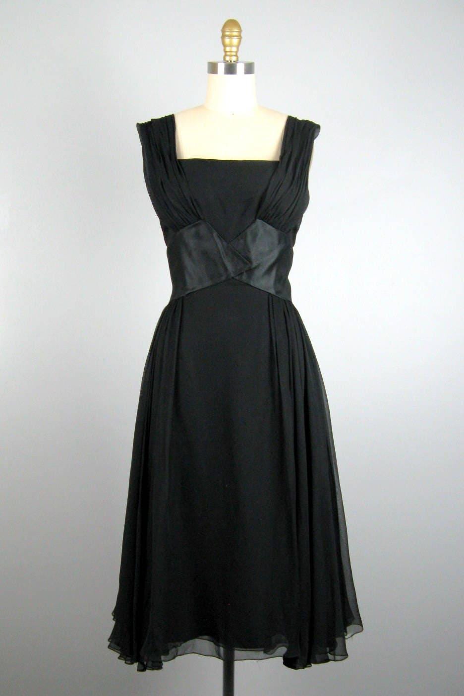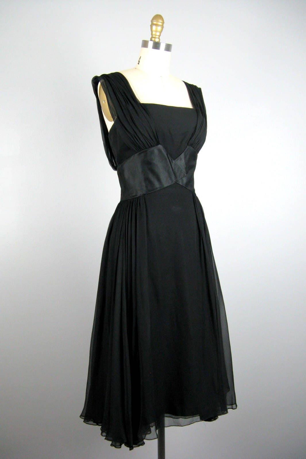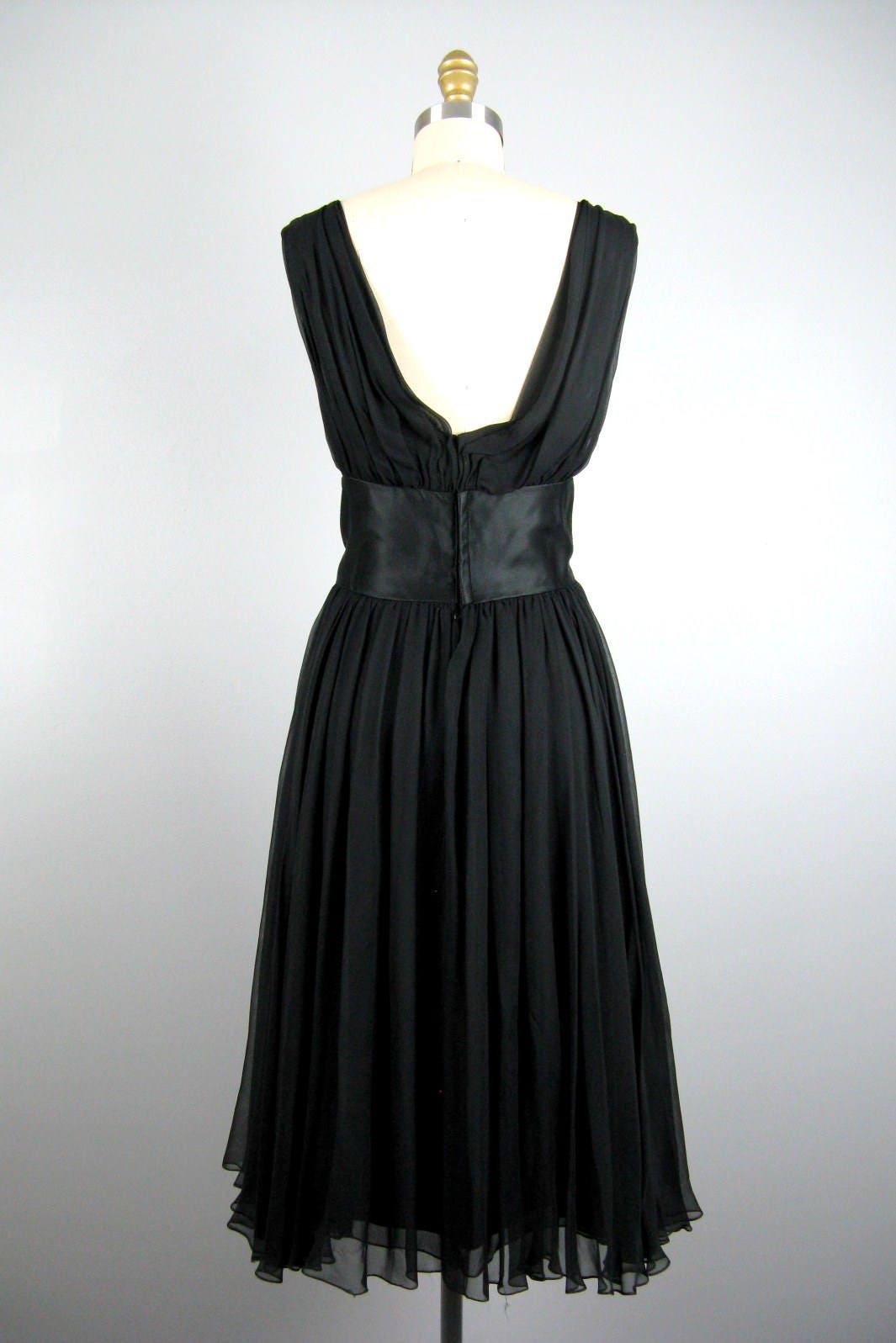 CONDITION: Over all excellent! There are a few small snags in the chiffon which is normal for this type of fabric. A small tear in the hem of the fabric that gets easily lost in the fullness and it looks like there was a pin attached at the front waist at some point, not original but likely added at some point. The dress had also been taken in by the previous owner in the bodice and I have returned it to it's original size, there are some faint stitch marks remaining.